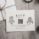 Keep your wedding details simple and stylish with this minimalist RSVP QR code card. Featuring elegant black and white typography and charming hand-drawn cake illustrations, this design blends modern convenience with timeless sophistication.