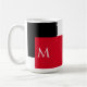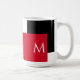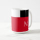 Bold and colourful yet simple in its minimal colour block design, this stylish mug has a red, black and white colour block pattern with your monogram initial in white text. It makes a great gift or addition to your mug collection. Personalise with your desired initial.