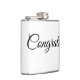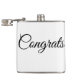 The flask itself is fine. It’s a cheap flask, obviously bought in bulk, however am prepared to overlook that. Given that it is a personalized item, I would have liked to have seen gift boxing instead of the generic packaging. Terrible printing, and/or quality. It’s a cheap, tacky vinyl. It is not cut straight and is also applied in a way that it is overhanging the bottom, causing the glue to catch on items and it will eventually roll and tear, damaging the wrap.