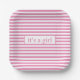 Simple Minimal Cute Pink and White Stripes Paper Plate