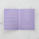 Modern memorial / funeral program featuring a contemporary typographic design with the headers in elegant script typography along with your event details in a simple and minimal layout. The colour theme is periwinkle purple and may be changed the design editing tool. This program is designed without a photo, but you may add one in the design editing tool.
