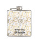The flask itself is fine. It’s a cheap flask, obviously bought in bulk, however am prepared to overlook that. Given that it is a personalized item, I would have liked to have seen gift boxing instead of the generic packaging. Terrible printing, and/or quality. It’s a cheap, tacky vinyl. It is not cut straight and is also applied in a way that it is overhanging the bottom, causing the glue to catch on items and it will eventually roll and tear, damaging the wrap.