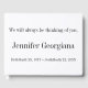 This elegant funeral/memorial sympathy guestbook features the message "We will always be thinking of you,", and the customised name and birth/death dates of the individual who has passed away. It could be used to record condolences for the family and friends of somebody who has recently passed away.