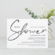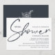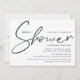 Simple minimal modern script "shower" with solid dark blue-grey and wildflower in a jar in white on the back of the invitation. Message me if you need assistance or have any special requests.