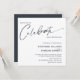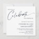 Simple minimal modern script "celebrate" with solid dark blue-grey and wildflower in a jar in white on the back of the invitation. Message me if you need assistance or have any special requests.