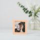 These miniature note cards are great for letting your family and friends know to save the date for your upcoming wedding. They feature a simple artsy minimalist design with a photo and small text on a pale orange or peach coloured background.