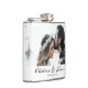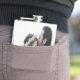 The flask itself is fine. It’s a cheap flask, obviously bought in bulk, however am prepared to overlook that. Given that it is a personalized item, I would have liked to have seen gift boxing instead of the generic packaging. Terrible printing, and/or quality. It’s a cheap, tacky vinyl. It is not cut straight and is also applied in a way that it is overhanging the bottom, causing the glue to catch on items and it will eventually roll and tear, damaging the wrap.
