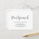 This is the modern minimal simple clean design themed, in Black font, Wedding party invitation Rescheduled (postponed / postponement) postcard (postponed) . It is the perfect and elegant way to make the reschedule announcement to your friends and family.