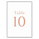 Simple and elegant with minimalist appeal, this lovely wedding table number card in white with citrus orange text has a clean modern look. No matter what colour you use for your wedding flowers, bridesmaids or groomsman's attire, the simplicity of the table numbers allows your wedding colour scheme to shine! NOTE: To create a table card for each table, you must create them one at a time. Edit the table number, i.e. table 1 and add to cart. Then edit the table number 2 and add to cart. Do this for each table that you will need until you have all the numbers created. Once you have them all added to cart, you can complete the checkout process.
