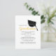 Create your own Modern and simple Graduation Party Invitation Postcard with our template design featuring a graduate cap with gold script lettering. Perfect to announce to friends and family about your impending grad 2025 party.