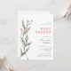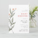 This elegant minimalist baby shower invitation features soft watercolor botanical elements and clean modern typography. The muted green and peach tones bring a natural and peaceful feel, perfect for a garden-inspired, boho, or neutral-themed baby shower.