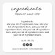 Simple Minimalist Modern Black and White Ingredient List Square Sticker with elegant typography for your homemade products, body butter, soap, candles...