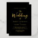 A simple wedding black-themed gold foil. this design features a simple minimalist ampersand template, classic traditional formal layout, simple calligraphy typography, black and white template, create your own template, add your own graphics, wedding bride and groom names, monogram back ampersand template, no graphics add your own, simple wedding wording template