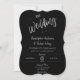 Create a personalised and splendid, chic, and minimalist The Wedding Of invitation for your wedding or anniversary. This wedding invitation features spacious and beautiful calligraphy script writing in faux silver foil lettering with a chalkboard black background. You can easily customise it with your own text and customise it to your liking. Please note: "-The- Wedding" and the ring artwork cannot be edited. Additional Note: The silver foil print is a faux silver foil effect. It is NOT the actual hot stamping silver foil.