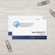 Over at the top is an abstract blue globe logo you can use with its business name and contact details beside it. Near the base lies your prestigious name and job title. The slogan caption "Trusted Partner In Global Communications" is inside the blue stripe. You can change the caption to suit your needs.
