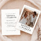 Infuse your wedding invitations with joy and charm using our Minimalist Boho Photo Wedding Invite. Capturing a candid, joyous moment, this design features the couple against a stunning beach backdrop, perfect for fall weddings. The minimalist layout and elegant typography bring a modern touch, while the rustic burnt orange hues add a bohemian vibe. This simple yet stylish invitation is ideal for couples looking for a printed invite that embodies both romance and a carefree spirit. Let your love story shine with this unique blend of boho and modern minimalist design.