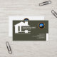 A simple concise professional card. Made for builders, architects. Near the card's left wall, you have a white silhouette of a stylish home with big windows and an open deck. Within its confines, it holds on to your name and job title. A slogan-tagline option is available beneath this home. Eastwards, you have a faux gold icon of a gold home with elaborate blue architecture. Southwards are all the contact details.