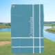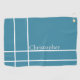 This simple ocean blue and white personalised golf towel has minimalist solid colour blocks and a white editable name for the golfer in your life. Give one to your dad, grandpa, or anyone else who you want to give a little present that relates to their hobby, or get one for yourself. Elegant and useful, too!