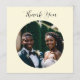 A simple, traditional and minimalist Thank You card for newlyweds to send. Click on 'Personalise' to upload your own photo to the design, and it will appear in the circle on the front of the cream-coloured card. The 'Thank You' greeting is above the photo, in elegant script typography. The reverse side of the card is blank for you to write your own personal message to each recipient.