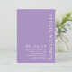 Simple Minimalist Elegant Lavender Text Wedding Invitation