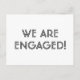 Simple and minimalist engagement announcement postcard with the text "we are engaged" with minimal trendy typography in black and white. Personalise the back with any text. Ideal to share the big news with your family and friends if you live far away. You can change the font, colours, and position of the text by clicking the button to edit the design.