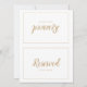 This simple minimalist|gold frame wedding reserved sign is perfect for an elegant wedding. The classic design features a basic border frame and classy gold and white typography with a modern minimal look. This reserved sign is designed to be a folded table or chair sign but arrives flat. You will need to score and fold it. QSD117