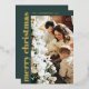 Simple Minimalist Green Merry Christmas Photo Foil Holiday Card