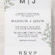 Simple Minimalist Greenery Monogram Wedding All In One Invitation