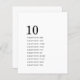 A size 4.5 x 5.6” semi-gloss 110lbs weight, which is of similar thickness to a postcard, with ONE per sheet. Simple Minimalist Guest Names Table Number. Simple comtemporary style with the table number larger in stylish lowercase and your guest names for the table beneath and lots of of white space Easily personalise the text to your own details. The same design is on the back