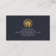A dark blue cover is accentuated by a simple white line near the base of the card. Over at the top lies a gold cutlery logo you can use followed by your prestigious name and job title. The email URL contact is near the base just above the white line.
