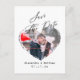 Simple Minimalist Love Heart Photo Script Budget Announcement Postcard in black and white text and colour photo: This is a simple wedding announcement postcard for your engagement on which you can add your own (horizontal) photo, it will become a heart-shaped outline. Don't forget to also update your wedding's details in the template to make it your own.