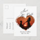 Simple Minimalist Love Heart Photo Script Budget Announcement Postcard: This is a simple wedding announcement postcard on which you can add your own (horizontal) photo, it will become a heart-shaped outline. Don't forget to also update your wedding's details in the template to make it your own.