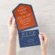 Invite your loved ones with this chic Navy and Orange Themed Wedding Invitation with modern convenience. This all-in-one wedding invitation template features a Navy and Orange background with very pale orange text. Customise the text, include your website and email for a simple, minimalistic all-in-one wedding invitation. Perfect for the style-conscious couple seeking a unique and functional invitation design.