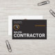 A simple minimalist design in a dark grey cover. The accentuating piece is your job title which is divided into two portion to create an oversize layer. Just above this are the faux gold logo of the alphabet-B (B can mean "Builder", "Building", "Better" etc) which you can use. The contact details are just at the top left corner. Directly across to the right face is your prestigious name. It is created in small fonts to contrast against the oversize position at the base.