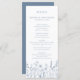 Simple Minimalist Elegant Dusty Blue Periwinkle Modern Wedding menu with wildflowers. Please find more matching designs and variations from my store. And feel free to contact me for further customisation or matching items.