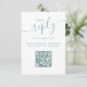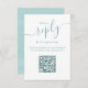 This design features a simple, minimalist, elegant, weddings response RSVP reply, with a classic and modern QR code, with a kindly reply, and a simple beach tropical turquoise watercolor