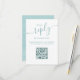 This design features a simple, minimalist, elegant, weddings response RSVP reply, with a classic and modern QR code, with a kindly reply, and a simple beach tropical turquoise watercolor