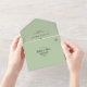This simple minimalist|sage wedding all in one invitation is perfect for an elegant wedding. The classic design features rustic sage with dark grey typography, and a modern minimal look. QSD116