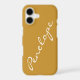 This stylish custom phone case features a simple minimalist design of your name in a beautiful handwritten script lettering in white on an earthy mustard yellow background. Great gift idea!