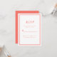 Simple and elegant wedding RSVP enclosure card features a minimalist design with a double frame border in living coral on a crisp white background. Personalise with the date of your wedding. Spaces provided for your guest to add their names and responses for a return reply. Lettering and script are in matching living coral. The back of the card is matching solid living coral.