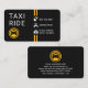 A black cover is accentuated by a pair of vertical yellow lines that contain buttons to hold your contact details. In the opposite direction is the oversize business name "TAXI RIDE" which you can change and a yellow taxi car logo you can use.