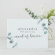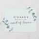 Simple Minimalist Eucalyptus Frame Script Wedding maid of honour bridal party proposal cards. Perfect for your spring or summer garden or outdoor themed wedding stationery. In a soft subtle muted colour palette of teal aqua greens, pastel mint, dusty blue greys, and simple classic white. The elegant script calligraphy font is a featured for the word maid of honour. This design is perfect for a farmhouse, country, or garden wedding. Simple Eucalyptus Wedding information cards to send out to guests. An easy to customise template for your DIY and affordable wedding stationery.