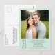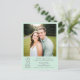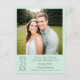 This pale neo mint green postcard is the perfect way to let your friends and family know about your upcoming wedding. Features a simple minimalist design with is artsy, modern, and elegant including your photo with grey text containing all of the vital information.