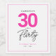 Simple neon pink, black and white "30 & Flirty Birthday Blend" personalised wine label with fun and modern typography. Customise it easily with age, name, drink name and birth year. Perfect for birthday gift or party favour.