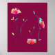 Abstract pink floral flower design inspired by Japanese art. This pink flower design on wine burgundy background with blue blue buds is simple and modern clean aesthetic.