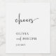 These elegant, black and white wedding wine labels are simple and minimalist yet very stylish due to the modern handwritten script that says "cheers", as well as the clean layout.