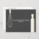 This product design features illustrations of a whisk and pin roller. The baking tool design in faux white gold on a dark grey background makes simple modern and unique business postcards for bakery and pastry chefs.