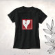 The product design features two white doves roost together and look up towards a heart. White doves are symbols of love, luck, peace, and prosperity. This simple birds illustration makes a cute modern and unique t-shirt with personalised text.