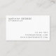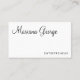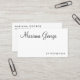 Modern business card with a simple design featuring your name in an elegant black script in the upper left hand corner and your title in the lower right hand corner, over a white background. The backside has your contact information. A basic and minimalist design that is great for many professions including a photographer, real estate agent, interior designer and more.