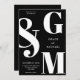 Simple Modern Black and White Wedding Invitation. Features bold monogram typography and minimal graphic design. Personalise text with all the details of your special day.